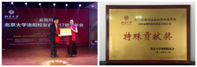 年会上洛阳泰斯特荣获北大洛阳校友会殊贡献奖。