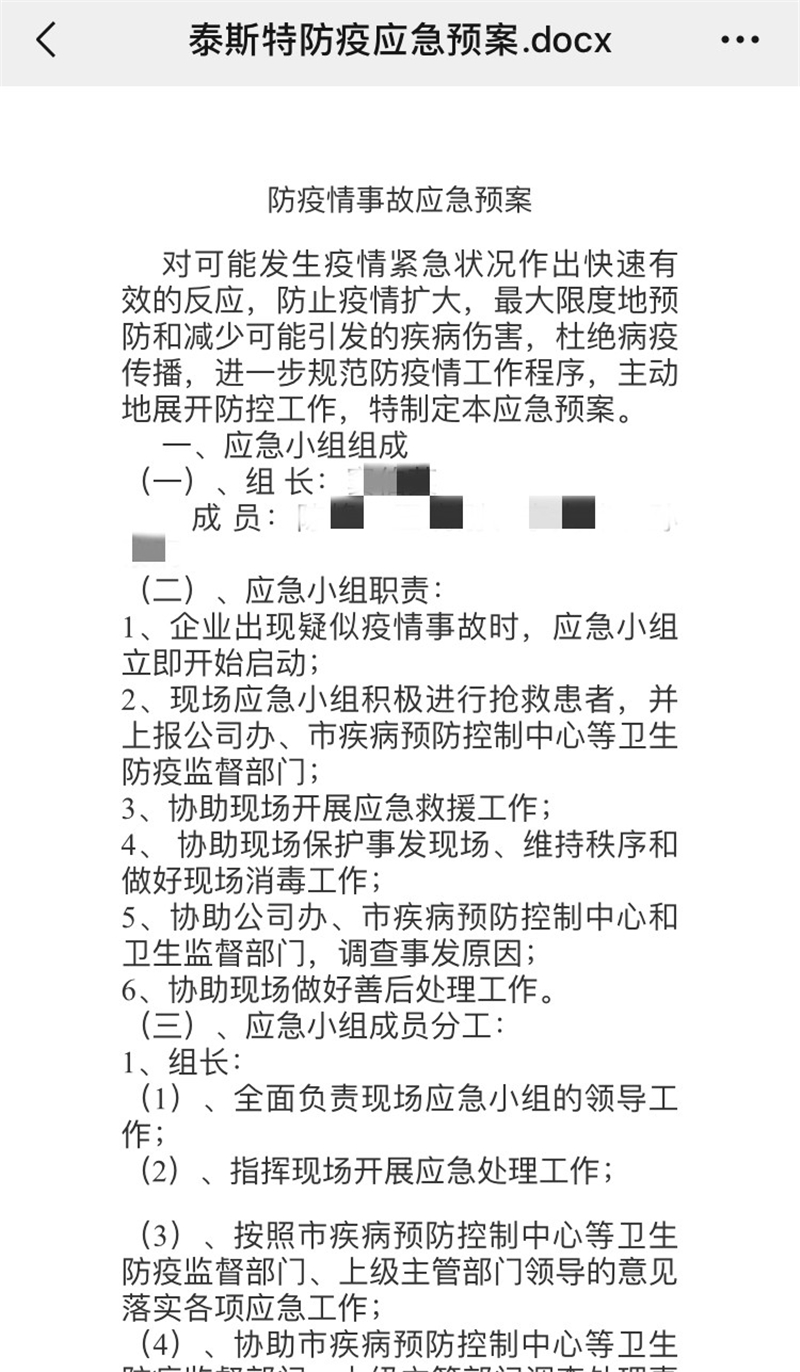 (1)泰斯特公司制定复工生产实施方案、应急方案、疫情防控工作方案等,确保严格落实、全面防控。