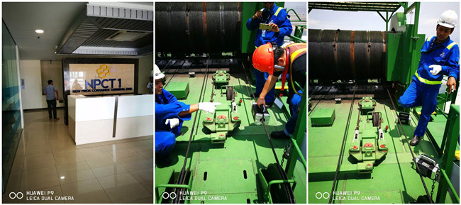 吊装和工程车辆井然有序的运转着。我随着NPCT员工登上几十米高的岸桥,再来场TST钢丝绳探伤仪现场操作培训,不得不佩服印尼兄弟的学习能力,很快就熟练掌握钢丝绳探伤设备的操作技术。哈哈,请允许我小得意番,我们泰斯的设备是很容上手的嘛。