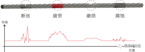 依据模式识别软件判别钢丝绳内、外部疲劳、锈蚀、磨损及断丝等损伤类型。